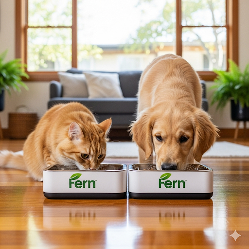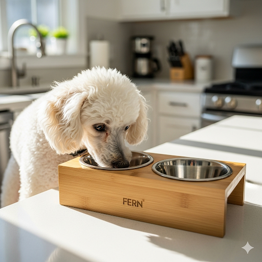 The Fern Double Pet Feeding Bowl combines practicality with modern design. Featuring two removable stainless steel bowls on an elevated bamboo stand, it improves posture and digestion for pets while adding a natural aesthetic to your home. Non-slip pads keep the stand stable, and each bowl is easy to clean. Stylish Fern branding completes the premium look.